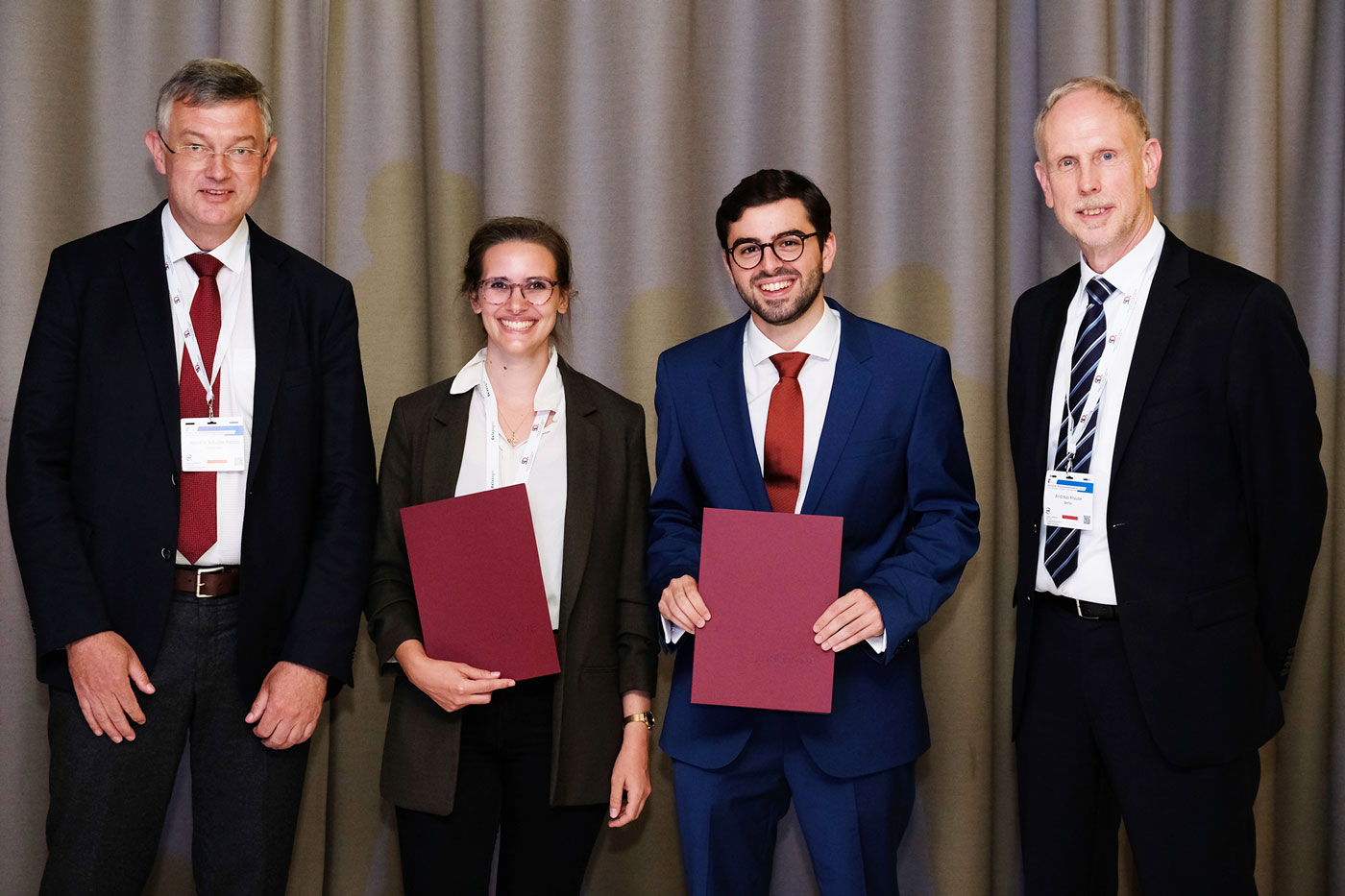 Die DGRh und ihre Arbeitsgemeinschaft „Kompetenznetz Rheuma“ loben seit 2021 den Joachim-Kalden-Promotionspreis aus. Dieser umfasst je eine klinisch orientierte und eine grundlagenwissenschaftliche Dissertation zu rheumatologischen Fragestellungen aus dem deutschsprachigen Raum. Prof. Dr. med. Hendrik Schulze-Koops überreichte die Preise an die beiden Nachwuchswissenschaftler und würdigte sie mit seiner Laudatio während der Eröffnungsveranstaltung des Jubiläumskongresses der DGRh e.V. in Berlin.