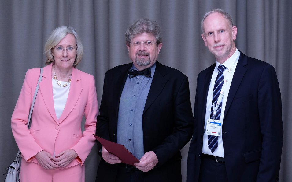 Im feierlichen Rahmen der Eröffnung des Jubiläumskongresses nahm auch Prof. Dr. rer. nat. Andreas Radbruch aus Berlin die Ehrenmitgliedschaft der DGRh entgegen. Der akademische Karriereweg des aus Celle stammenden Wissenschaftlers begann 1980 mit seiner Promotion zum Dr. rer. nat. an der mathematisch-naturwissenschaftlichen Fakultät der Universität zu Köln. Er führte ihn weiter über verschiedene wissenschaftliche Stationen an renommierten Instituten in Köln und Birmingham schließlich nach Berlin. Dort leitet er seit 1996 als Wissenschaftlicher Direktor das Deutsche Rheuma-Forschungszentrum Berlin (DRFZ) – als rheumatologisch-immunologisch bedeutende wissenschaftliche Einrichtung von hoher Strahlkraft. Seit 1998 ist er zudem als Professor für Experimentelle Rheumatologie an der Medizinischen Fakultät der Humboldt Universität zu Berlin, Charité tätig. Der auch international hoch anerkannte Experte für Immunologie übt vielfältige Ämter und Funktionen in wissenschaftlichen Gesellschaften und Gremien aus. Unter anderem ist der 69-jährige seit 2020 Vorsitzender des Wissenschaftlichen Beirats der Robert-Koch-Stiftung.