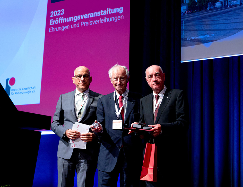 Ausgezeichnet für: In Anerkennung und Würdigung besonderer Verdienste um die Rheumatologie verleiht die DGRh die Kußmaul-Medaille 2007 an Prof. Dr. Ernst Feldtkeller und Prof. Dr. Dr. Hans Kröger.