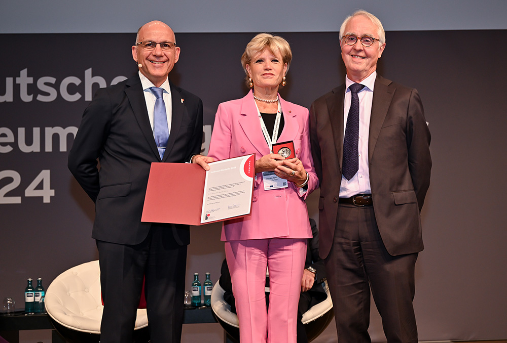 Die Deutsche Gesellschaft für Rheumatologie und Klinische Immunologie e.V. (DGRh) verleiht die Kußmaul-Medaille der DGRh in diesem Jahr Donata Apelt-Ihling, Unternehmerin aus Oberkirch/Baden-Württemberg. Mit der Auszeichnung ehrt die DGRh die Unternehmerin für ihre bedeutenden Verdienste um die Rheumatologie. Die Verleihung fand im Rahmen des Deutschen Rheumatologiekongresses 2024 in Düsseldorf statt. Laudator Prof. Dr. med. Matthias Schneider überreichte die silberne Plakette an Donata Apelt-Ihling während der Kongresseröffnung. Frau Apelt-Ihling wird für ihr außerordentliches Engagement für Menschen mit Rheuma ausgezeichnet. Insbesondere erhält sie die Ehrung für ihren aktiven, langjährigen Einsatz als Schirmherrin der Initiative „RheumaPreis“ für Menschen mit Rheuma im Berufsleben.